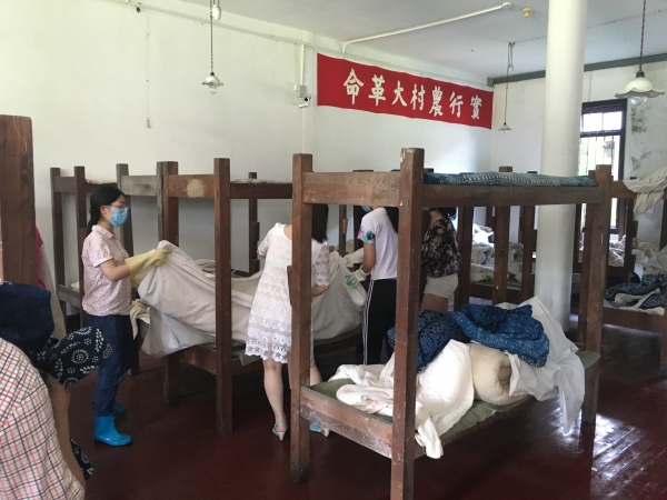 與暴雨洪水搏斗過的革博干部群眾,沒有絲毫松懈,趁著僅有幾天天空放晴,抓緊開展災后自救工作。在展廳里,在辦公室旁,在館區(qū)庫房,到處都是人們忙碌的身影。他們各司其職,在完成好自己辦公室清掃工作的同時,積極完成公共區(qū)域的衛(wèi)生。有的用水槍沖洗淹水后留下的淤泥,有的將陳列展廳的復原展品一一重新規(guī)放,有的用消毒水將展板搽拭干凈,有的將潮濕的復原陳列的展品被套清洗干凈,趁著少有的幾天晾曬干凈,還有的開展全館殺毒滅菌,準備在最短的時間內以全新面貌迎接八方游客。與此同時,館領導班子還召開館長辦公會,分類指導館區(qū)恢復對外開放和后期正常辦公工作,安排各部門對重點區(qū)域和設施進行深入細致排查并加強晝夜看守,以應對新一輪降雨的到來。